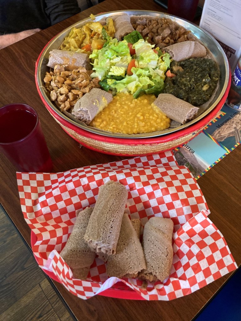 The food is flavorful—spicy, sour, earthy, and delicious. Kibrom’s has options for meat lovers, vegetarians, and vegans. Eating from a communal plate with your hands adds intimacy to the meal. A great meal, reasonably priced and prepared by a James Beard semi-finalist. What more can I say? Get yourself there today and enjoy!